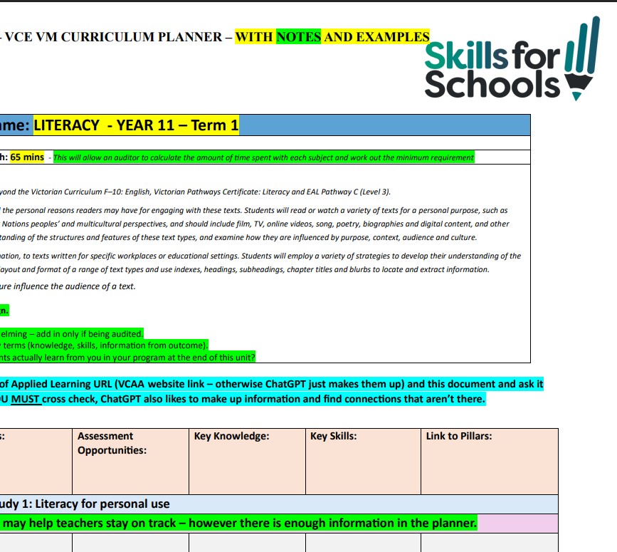 VCE VM LITERACY TERM 1 - UNIT 1 - Area Of Study 1
